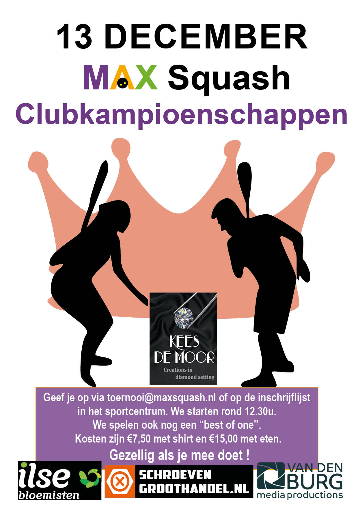 Clubkampioenschap 2025 wordt zaterdag 13 December. Nieuwjaarstoernooi 2026 wordt zaterdag 24 januari gehouden.